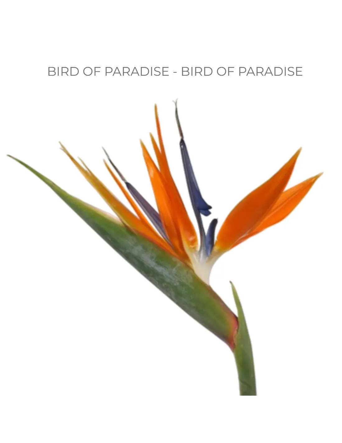 Bring tropical drama and sculptural elegance to your floral designs with Birds of Paradise, a show-stopping focal bloom known for its vivid orange and indigo petals that mimic the plumage of an exotic bird. Each stem is a statement—bold, architectural, and unmistakably luxurious.