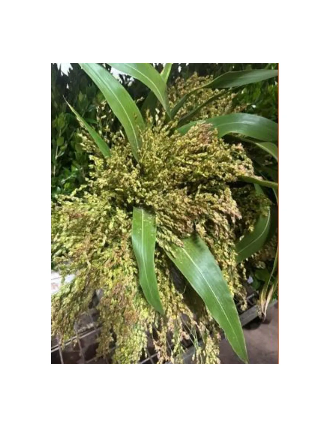 Florists often use broom corn to add height and contrast in harvest-inspired centerpieces, seasonal wreaths, and editorial installations. Its tactile quality and natural variation make it a favorite for boho, farmhouse, and woodland aesthetics. Whether styled solo or paired with dahlias, grasses, and preserved foliage, broom corn brings depth, warmth, and a sense of abundance to fall compositions.