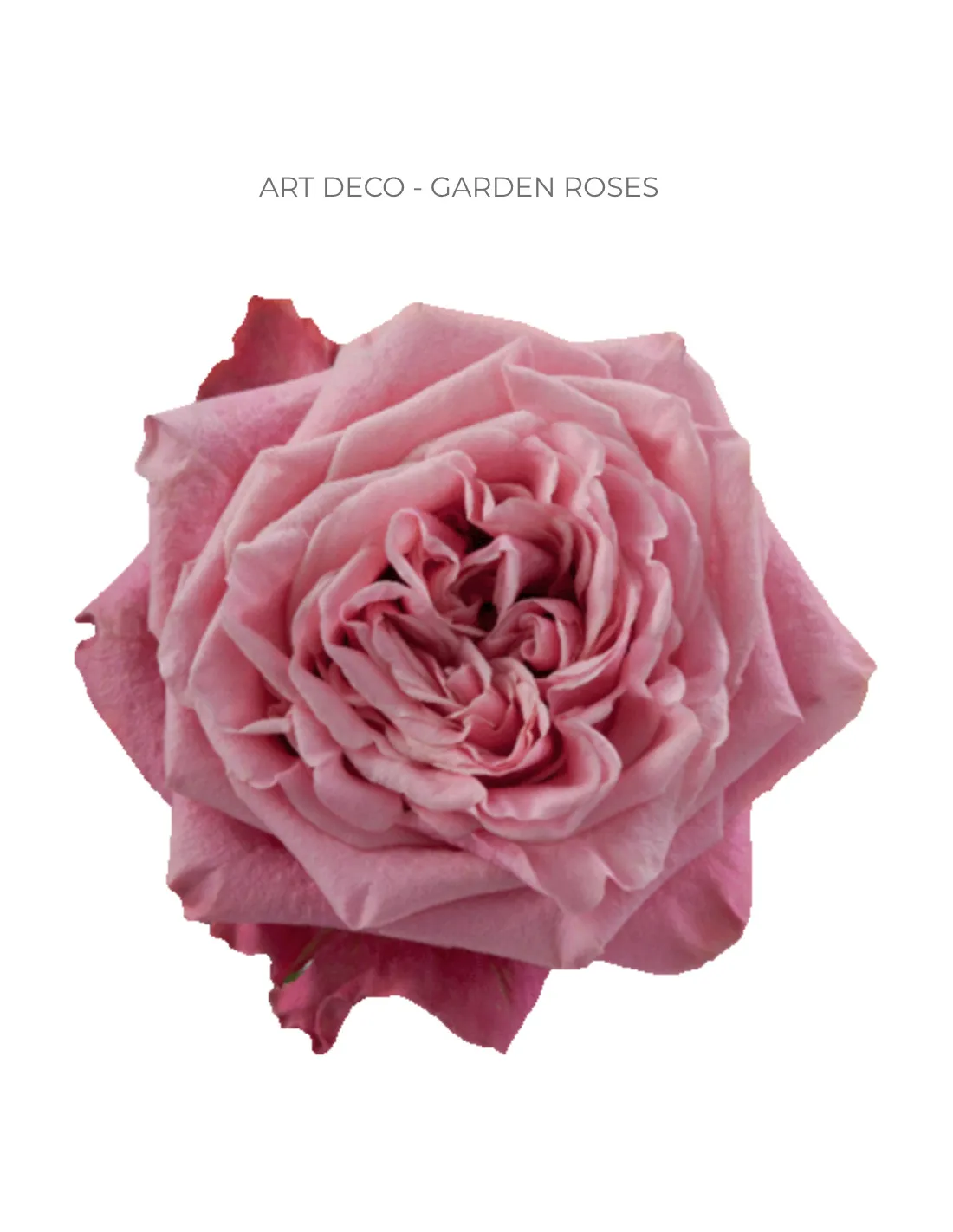 The Art Deco garden rose is a striking variety known for its medium-pink hue that intensifies towards the outer petals, creating a rich, layered effect. Its ruffled petal pattern adds a touch of vintage elegance, making it perfect for romantic and sophisticated floral arrangements.