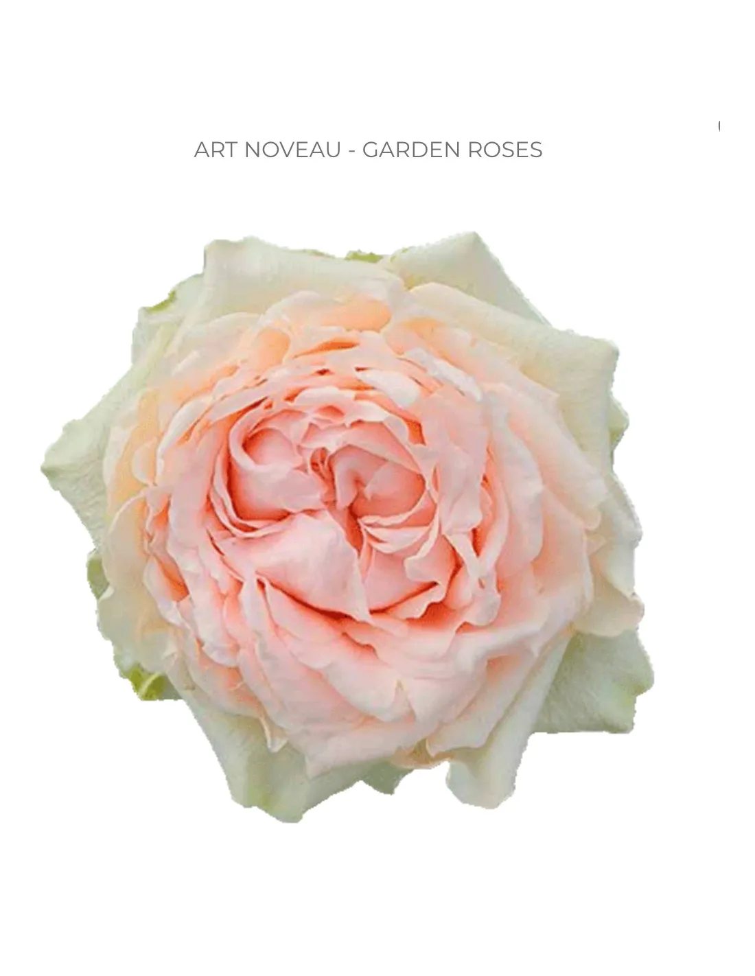 Art Nouveau Garden Rose is known for its soft blush‑pink petals and lush, ruffled garden‑rose form. As the bloom opens, it reveals layers of delicate, airy petals that create movement, texture, and a refined romantic presence — ideal for premium wedding work, bridal bouquets, and editorial‑style arrangements.