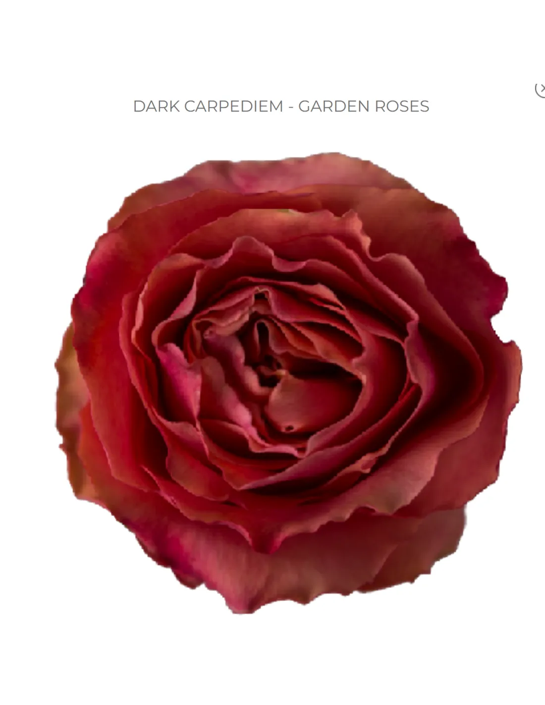 The Dark Carpe Diem garden rose appears to be a deeper-toned variation of the classic Carpe Diem rose, known for its rich, sunset-inspired palette and lush form. It features: