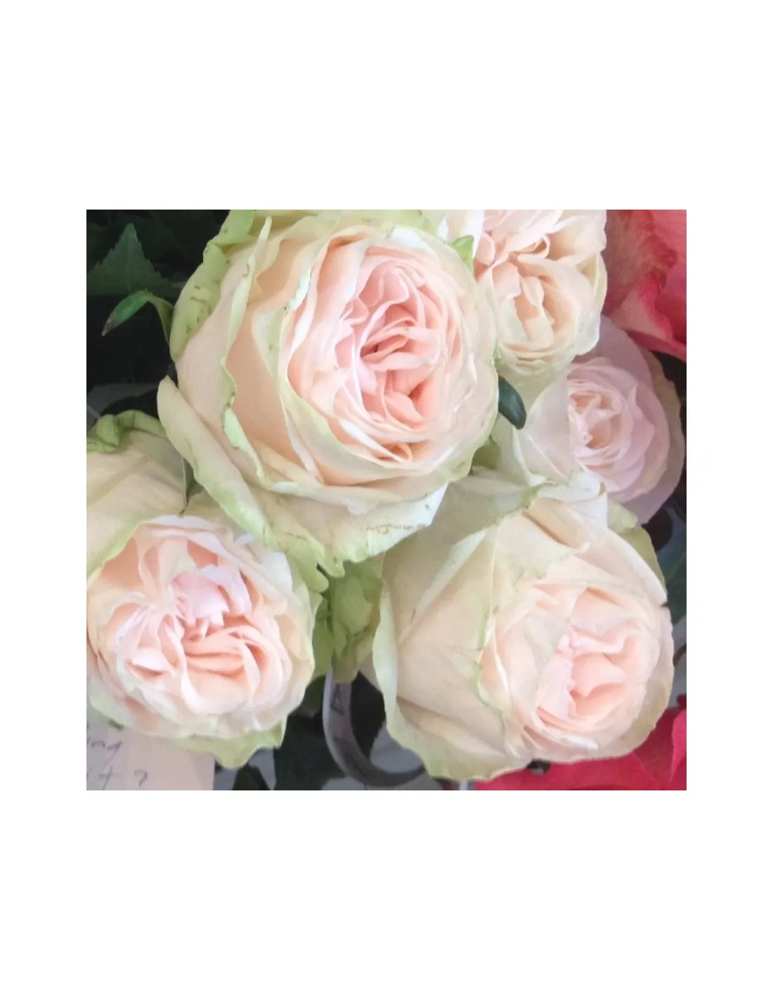 - Inner petals in light peach and blush shades, paired with a touch of mint green on the outer petals.