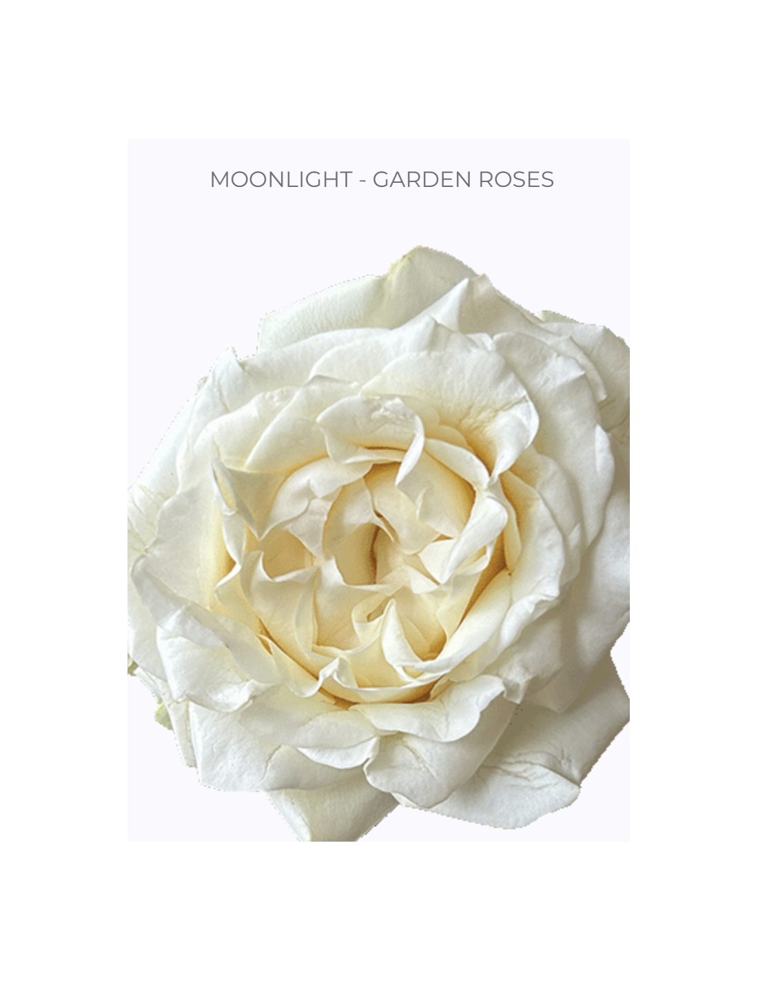 The Moonlight Garden Rose is a luminous variety with soft cream-to-yellow petals, lush rosette blooms, and a romantic fragrance, making it a favorite for weddings, luxury events, and refined floral design.