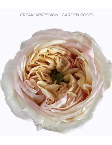 The Cream Xpression Garden Rose is a luxurious cream-colored bloom with a soft yellow center and ruffled petals, perfect for weddings, luxury events, and professional floral design.