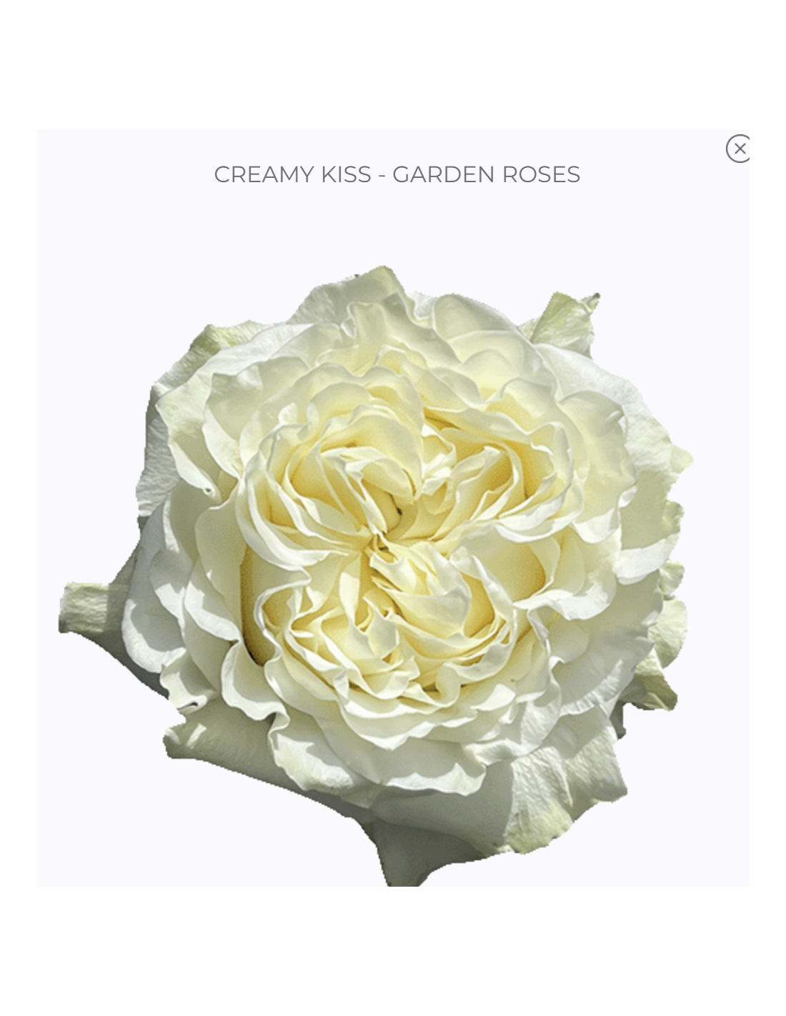 The Cream Xpression Garden Rose is a luxurious cream-colored bloom with a soft yellow center and ruffled petals, perfect for weddings, luxury events, and professional floral design.
