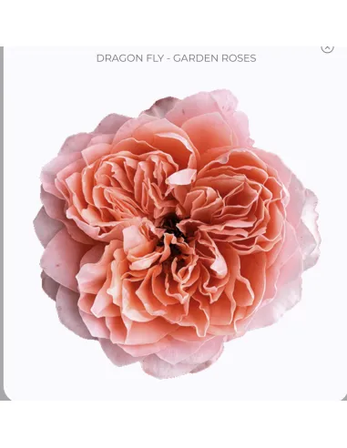 The Dragonfly Garden Rose is a coral-pink to peach-toned garden rose with lush, ruffled petals and a strikingly modern look, perfect for weddings, luxury events, and professional floral design.