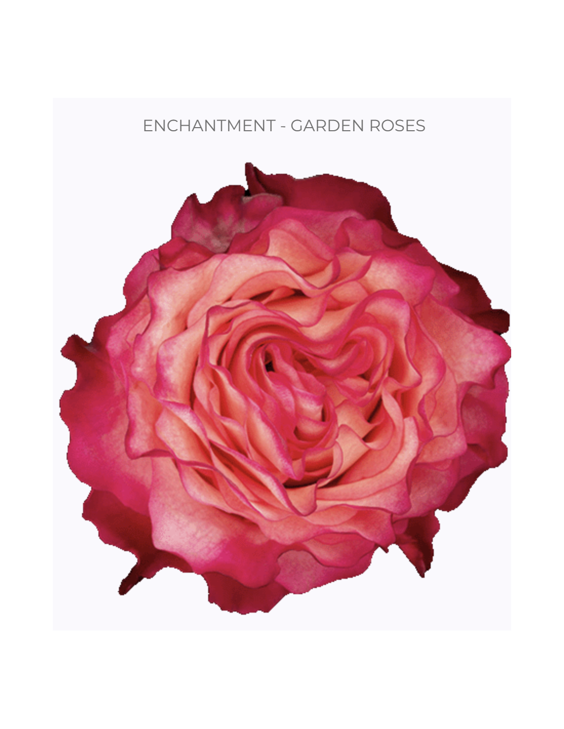 The Enchantment Garden Rose is a striking bi-color variety with hot pink and white petals, often edged in berry tones, making it a bold and versatile choice for weddings, luxury events, and professional floral design.
