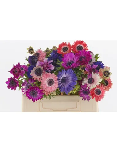 Fresh assorted Anemones in a seasonal color mix. Perfect for weddings, events, and premium floral design. Available in 50 or 100 stems.