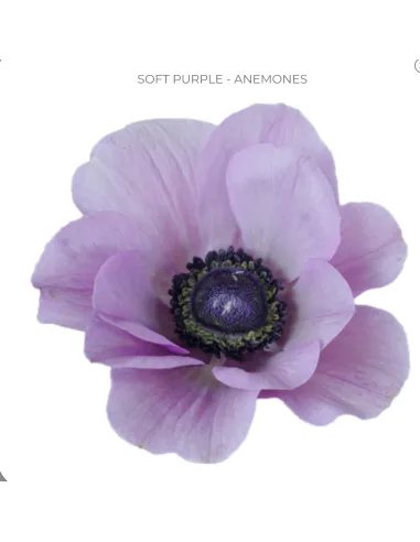 Soft lavender Anemones with delicate petals and dark centers. Ideal for weddings, events, and premium floral design. Available in 60 or 120 stems.