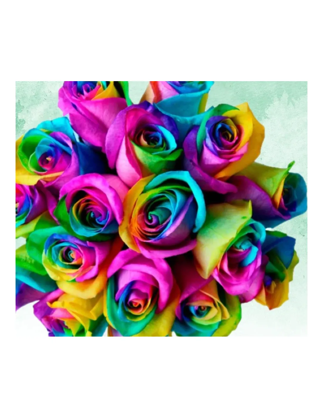 A bold, joyful statement rose that transforms any arrangement into a celebration of color. Tinted Rainbow Roses are created by carefully hand‑tinting premium white roses, allowing each petal to absorb a spectrum of vivid hues—resulting in a one‑of‑a‑kind bloom that feels magical, modern, and irresistibly eye‑catching.