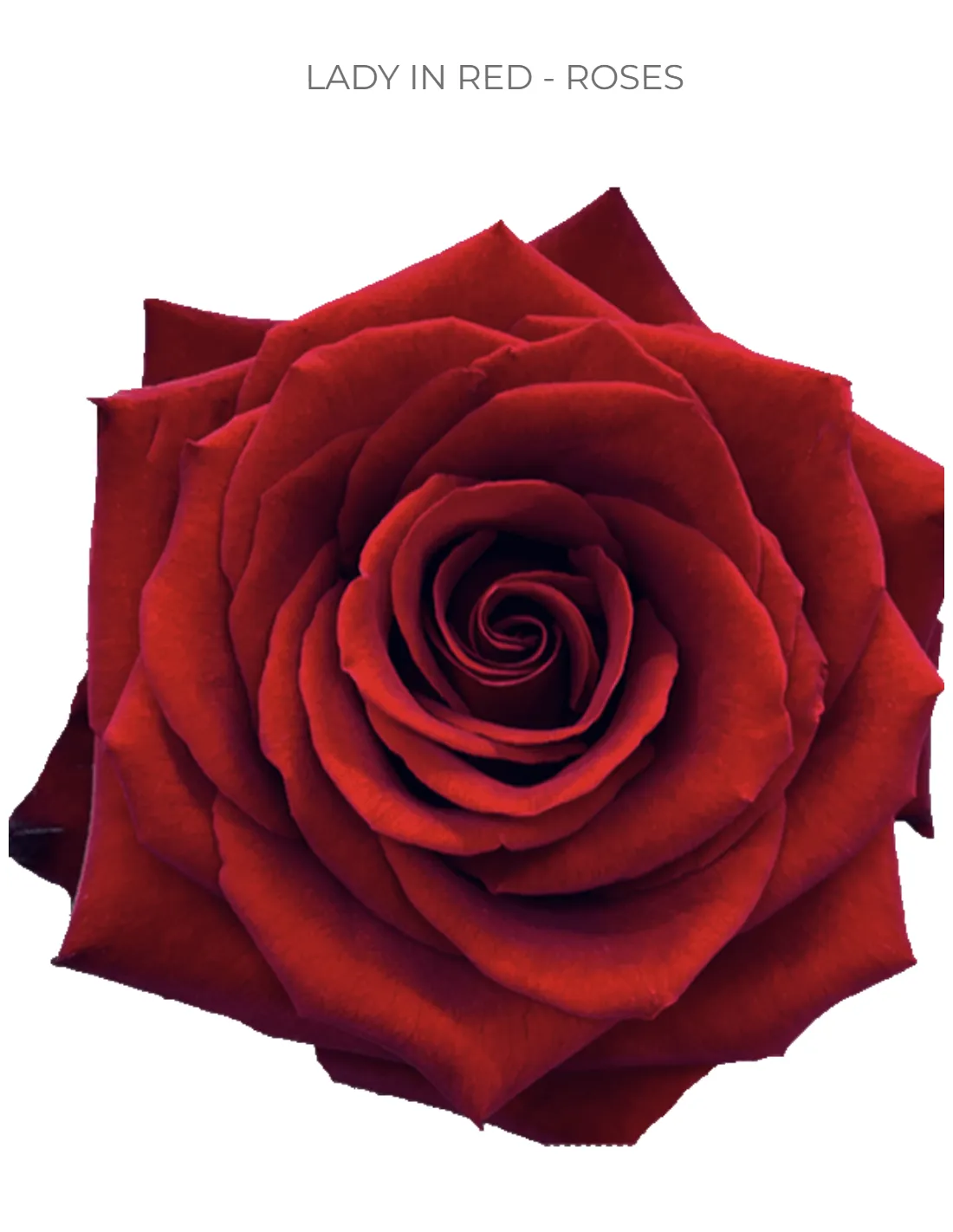 Lady in Red red rose variety: Featuring an exquisite blend of velvety petals and a captivating deep crimson hue, this stunning rose is perfect for expressing love and passion. Ideal for romantic occasions, the Lady in Red is sure to make a lasting impression, whether in a bouquet or as a single statement bloom.
