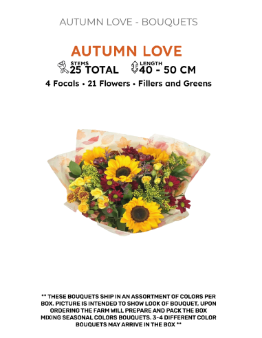 Each bouquet is artfully arranged to evoke the golden hues and cozy textures of autumn. Expect: