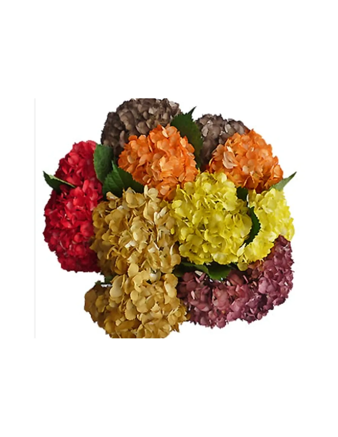 - Color Fall Airbrushed Hydrangeas: A warm-toned mix perfect for cozy wedding centerpieces or Thanksgiving installations. Their airbrushed finish adds depth and texture to arrangements.