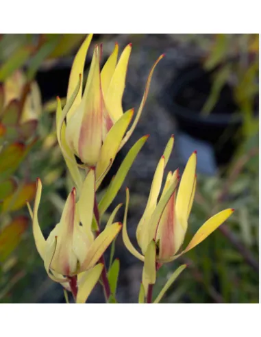 - Leucadendron requires well-draining, acidic soil and thrives in full sun.