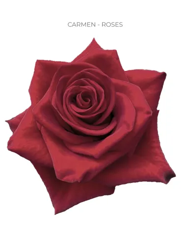 Carmen rose variety. This stunning rose is celebrated for its vibrant, deep crimson petals and rich fragrance, making it an exquisite choice for romantic occasions and celebrations. Known for its incredible durability and long vase life, the Carmen rose adds a touch of sophistication and passion to any floral arrangement, ensuring it captivates hearts and leaves a lasting impression. Perfect for weddings, anniversaries, or simply to brighten someone's day, the Carmen rose is truly a timeless floral masterpiece.