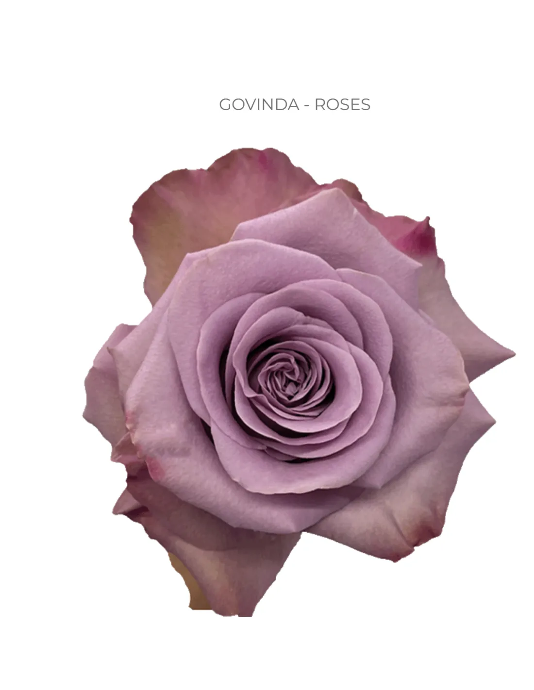 A statement rose with elongated petals, Govinda blends mauve and lavender with a rusted outer-petal saturation. Its multiple tones allow it to be leveraged as an additional touch of femininity in arrangements.