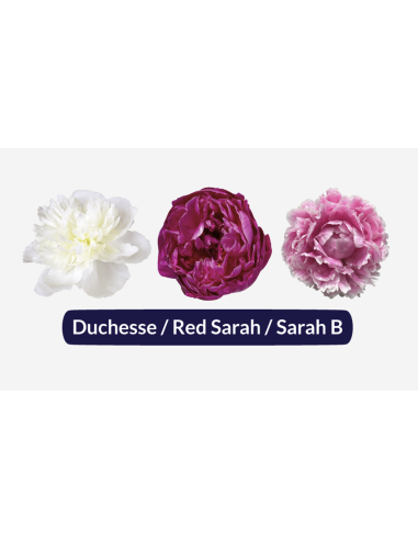 A curated trio of peony perfection. This premium box blends 45 stems of blush-toned Pink Sara, 30 stems of rich Red Sara, and 15 stems of pristine White Duchess—designed to offer romantic contrast, tonal harmony, and visual depth.