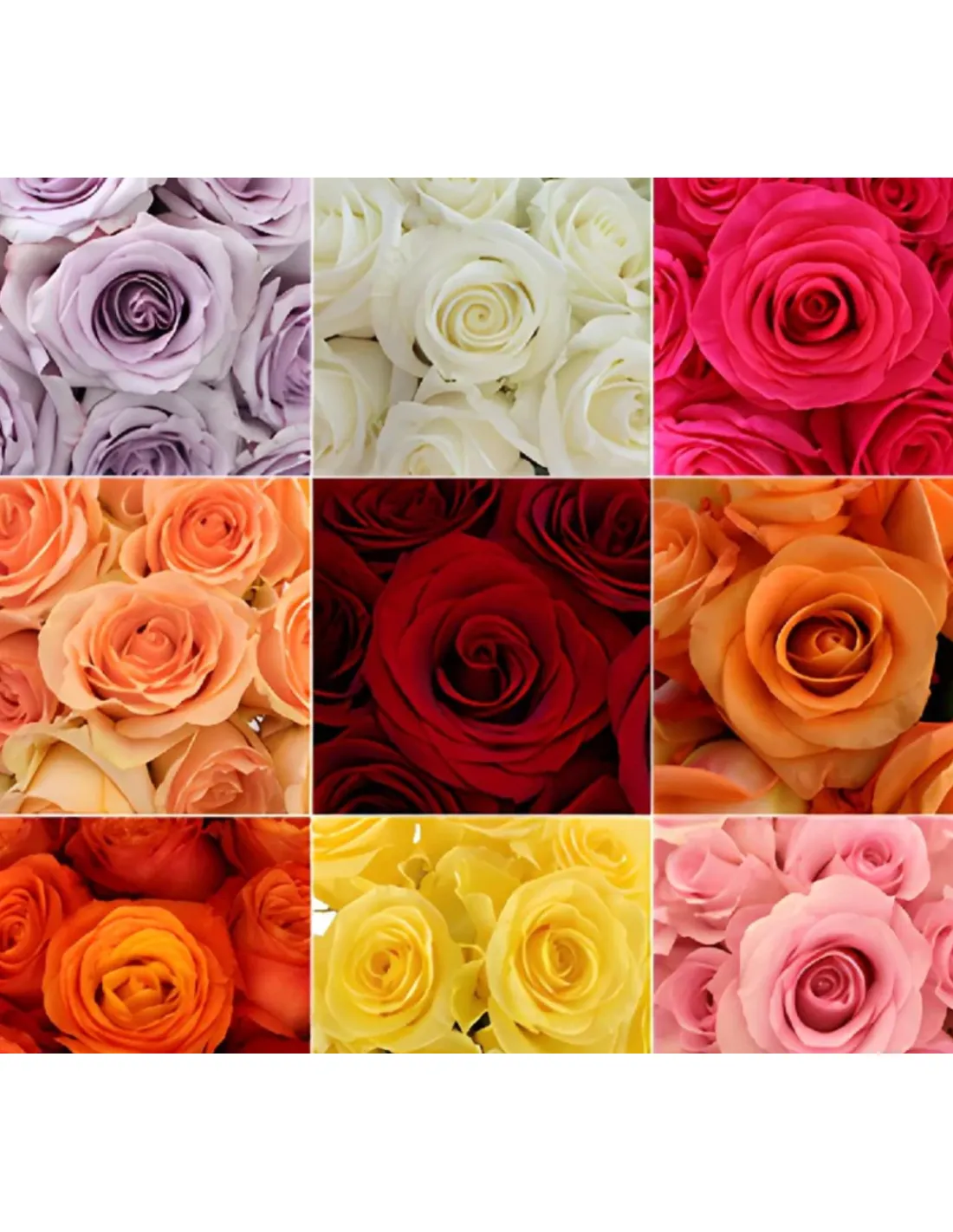 Transform any event into a vibrant tapestry of color and charm with our premium assorted roses. Our bulk box offers growers' assortments of 3-5 different stunning colors per 25-stem bunch, each carefully selected for their beauty and bloom. Standing tall at 50cm, these roses are perfect for florists, event planners, or anyone looking to add an exquisite touch to their celebrations. Elevate your floral design and make a bold statement with reliable quality and captivating hues. Ready to bring your vision to life? Place your order today and let the petals do the talking.