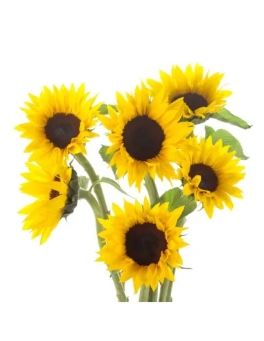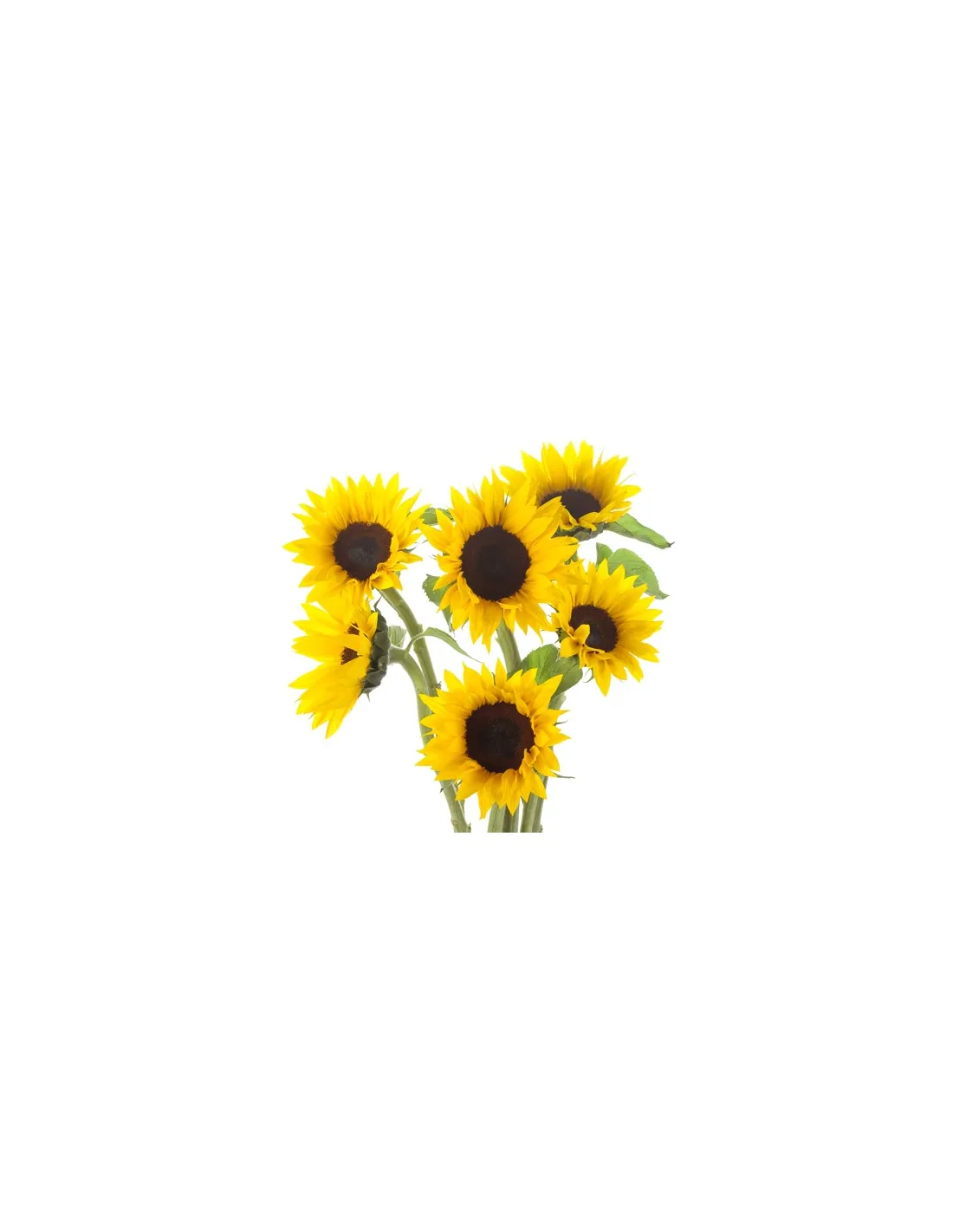 Each stem carries a single bloom, with flowers measuring around 1-2 inches in diameter. The stem length ranges from 12 to 18 inches, making them ideal for smaller arrangements or as accent flowers. These sunflowers are known for their long vase life, lasting approximately 6-8 days.