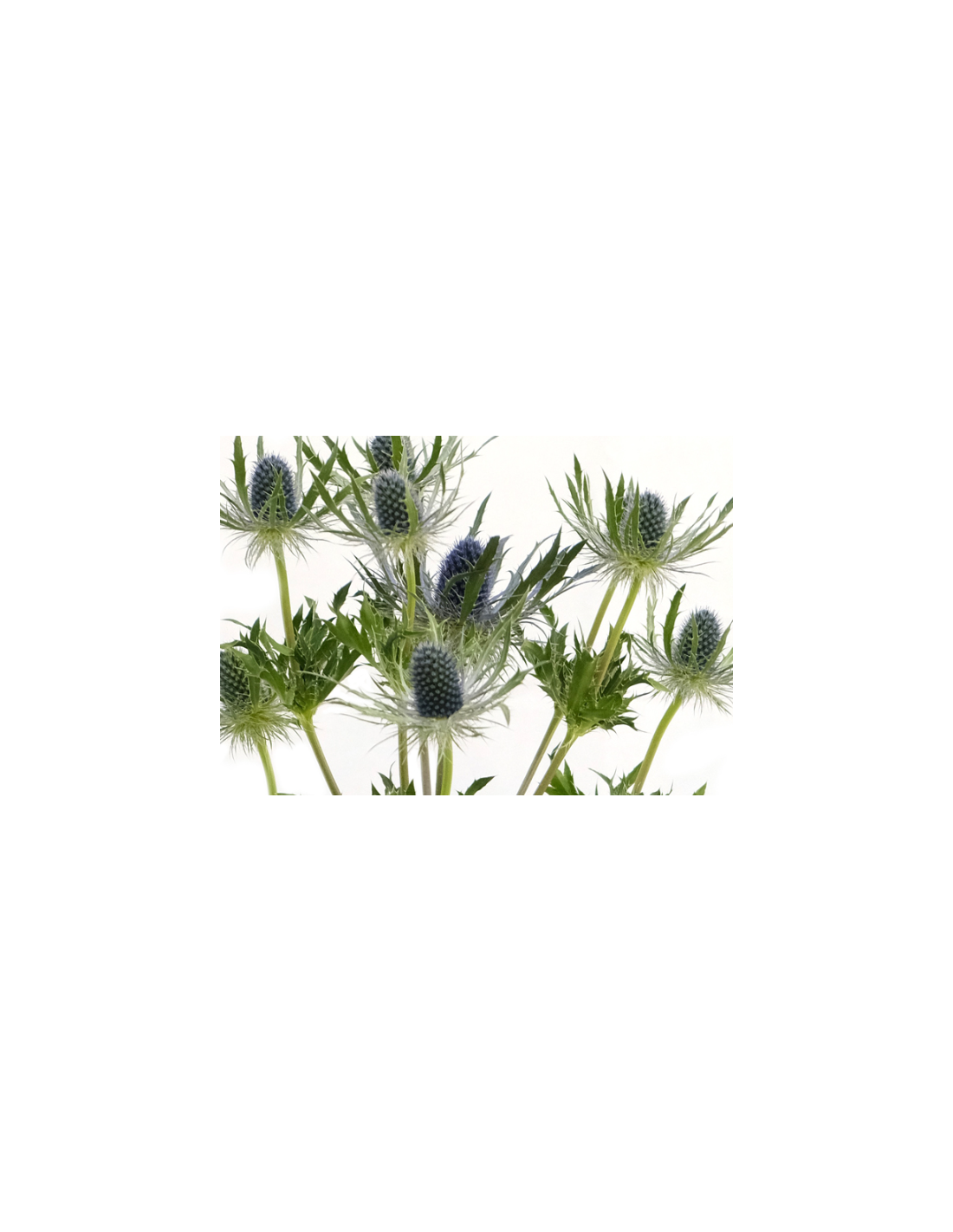 Eryngium Blue Lagoon delivers that unmistakable electric‑blue punch designers crave. Each 60cm stem features a sculptural cone surrounded by spiky, metallic bracts that hold color beautifully from arrival through event day. The tone is saturated, cool, and modern — a perfect accent for bouquets, centerpieces, and editorial work where texture matters.
