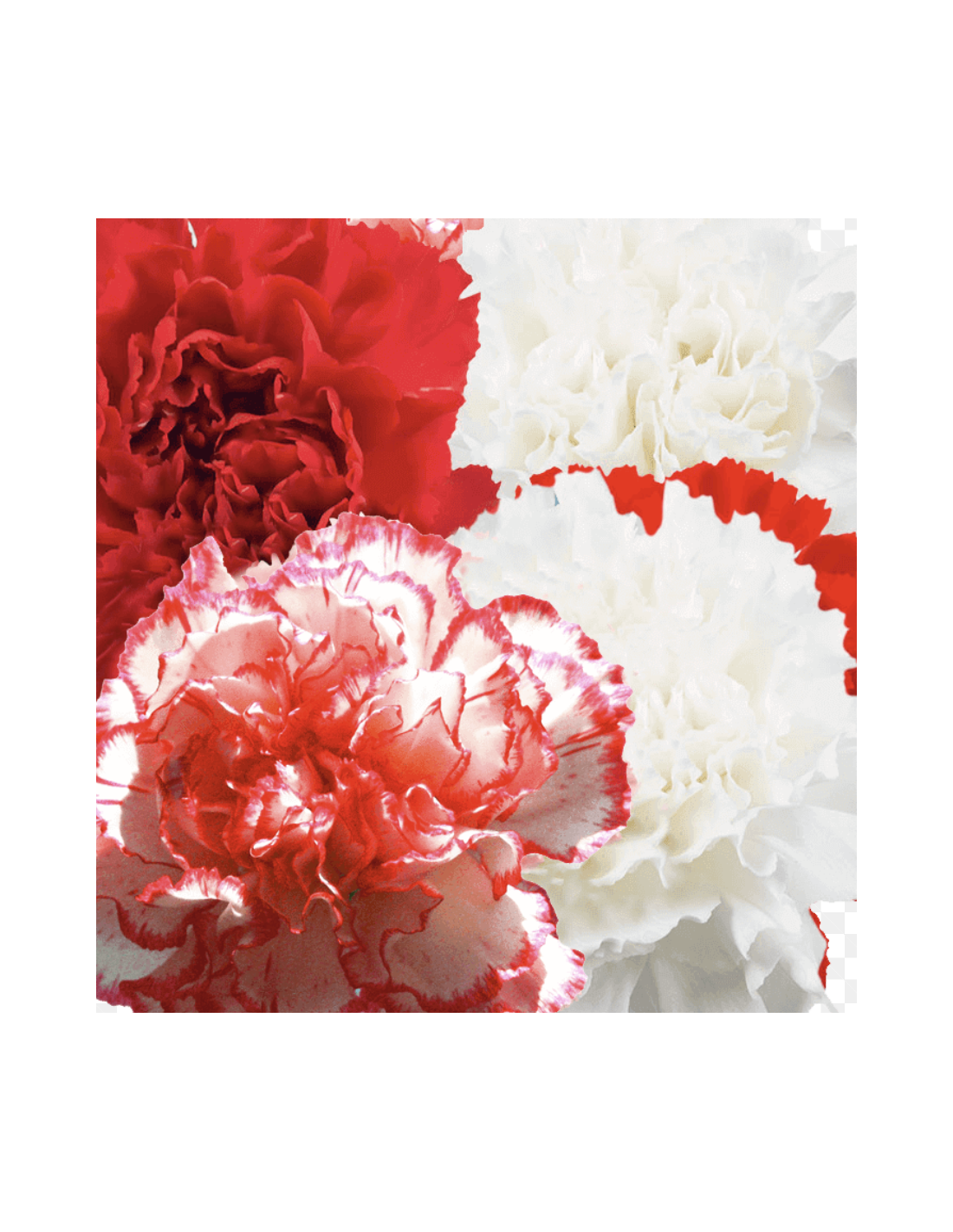 Vibrant Colors: Includes red, green, white, and peppermint carnations